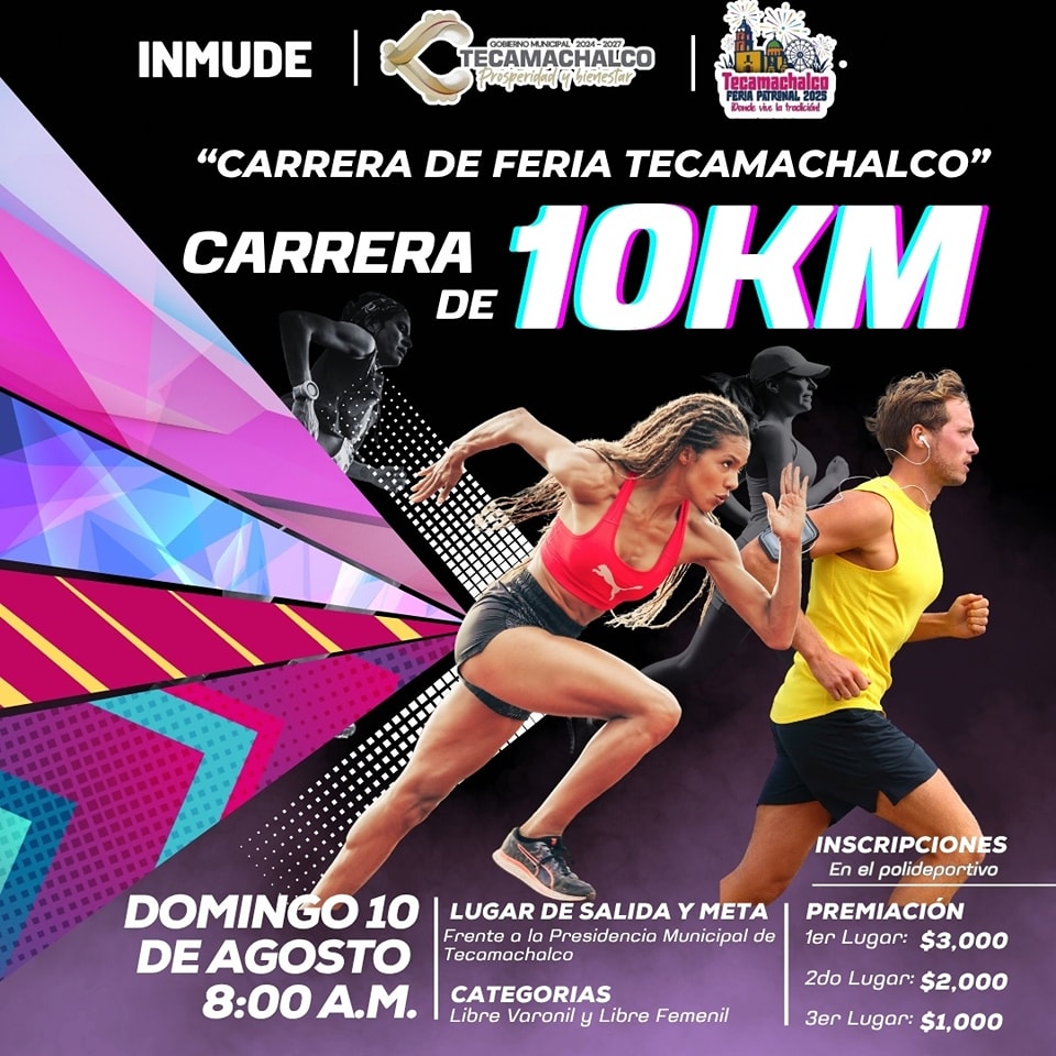 El Ayuntamiento de Tecamachalco invita a participar en las Carreras de Feria 2025, que se llevarán a cabo el próximo 10 de agosto a las 8:00 a.m.