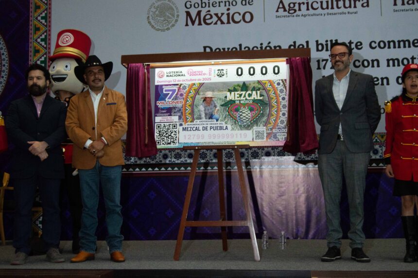 Para reconocer el 10° Aniversario de la denominación de origen del mezcal de Puebla, la Secretaría de Agricultura y Desarrollo Rural (AGRICULTURA) y la Lotería Nacional presentaron el billete del Sorteo Zodiaco No. 1722 para destacar el trabajo de todas y todos los productores que elaboran mezcal artesanal con altos estándares de calidad y autenticidad, derivados de agaves como el espadín, espadilla y papalometl.