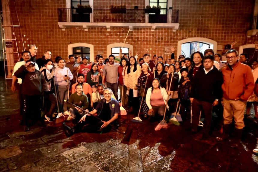 La presidenta de Atlixco, Ariadna Ayala, encabezó una jornada de limpieza y rehabilitación en el zócalo para preparar la Villa Iluminada 2025, que inicia el 21 de noviembre.