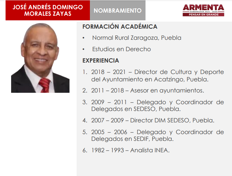 En tanto, Andrés Morales Zayas fungirá como el director del Instituto Nacional para la Educación de los Adultos (INEA).