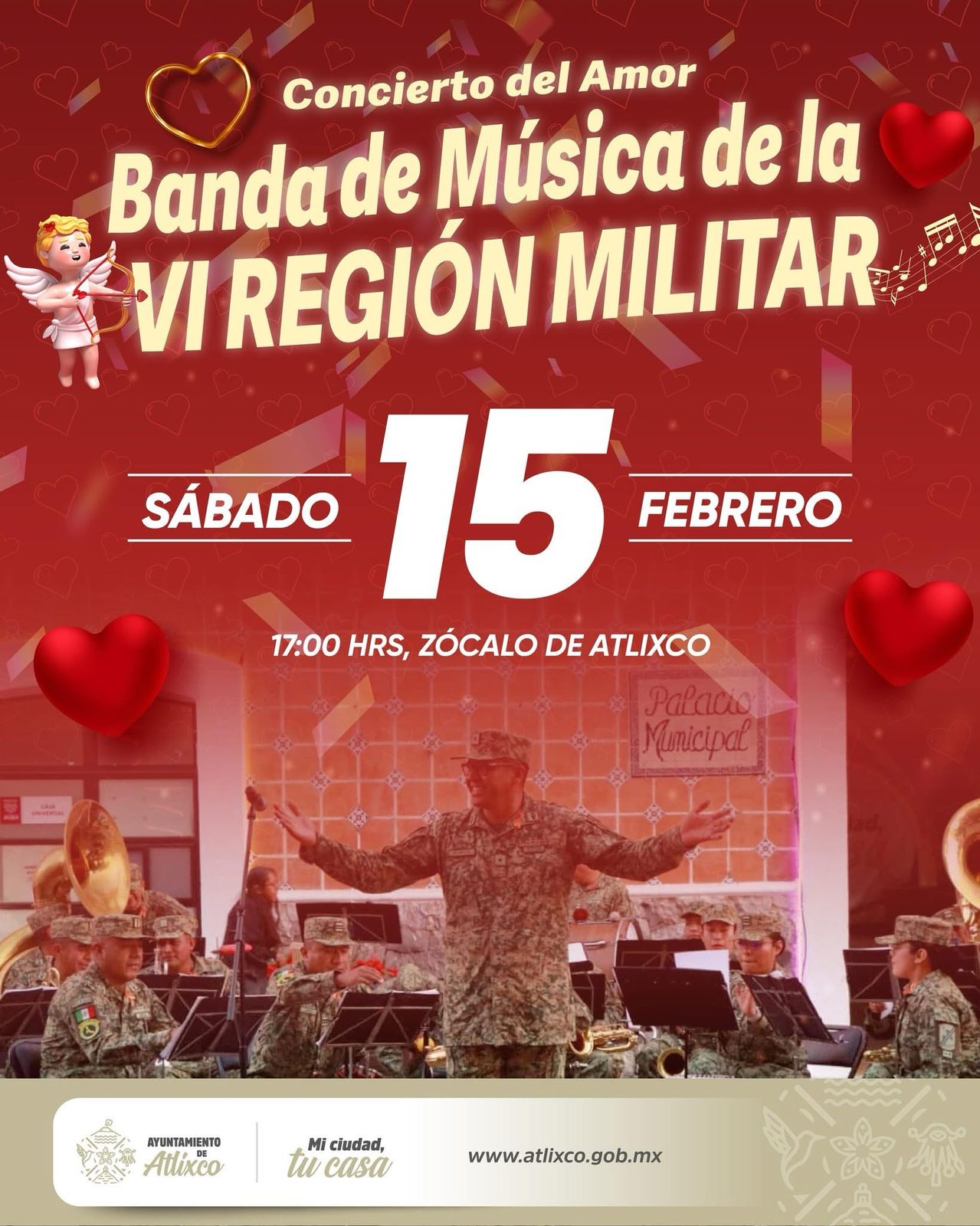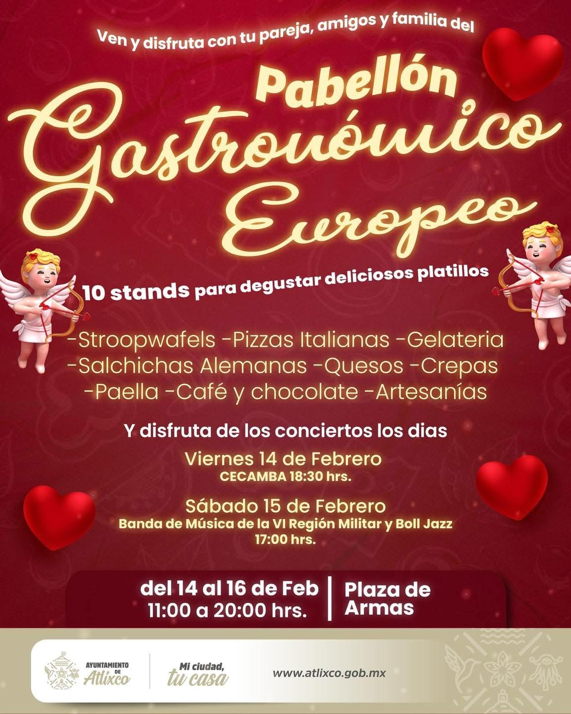 El 15 de febrero disfrutas de la Banda de Música de la VI Región Militar y el ensamble Boll Jazz; mientras consumes de la gastronomía que te ofrece el Pabellón Gastronómico Europeo; al otro día participa en la Rodada de la amistad por las calles de Atlixco.