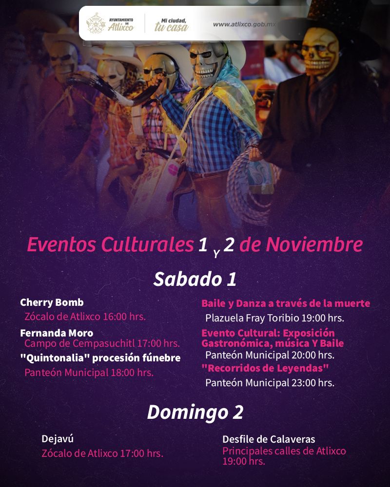 Atlixco conmemora el Día de Muertos con una amplia agenda cultural impulsada por la presidenta Ariadna Ayala.