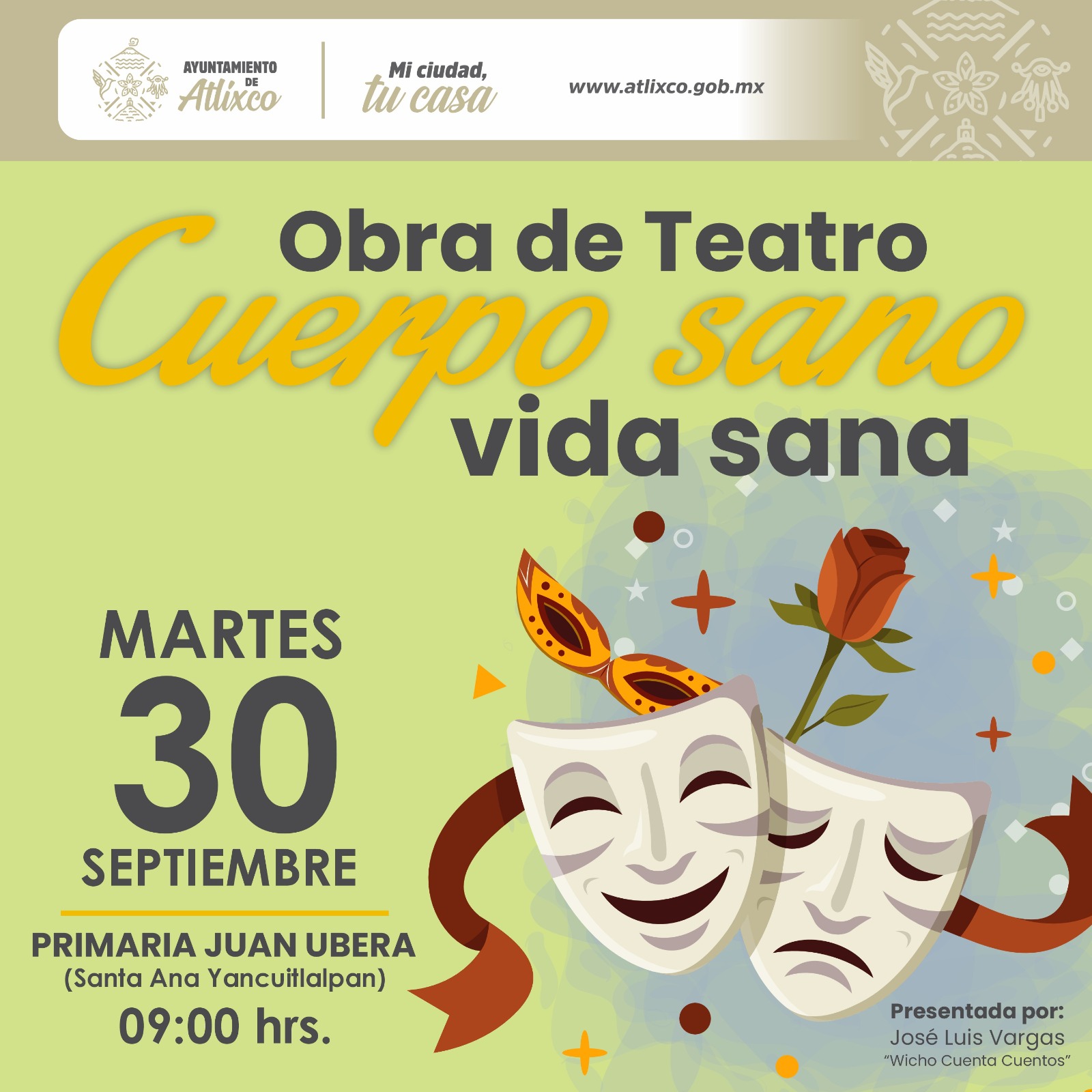 - 20 sept., 18:00 h, Casa de Cultura Acapetlahuacan: obra “Atlixco, yo te llevo en el corazón”.