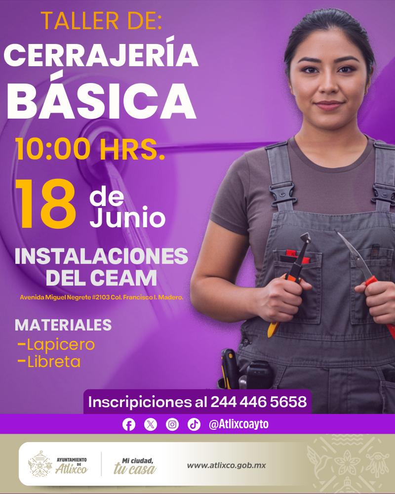 Con el objetivo de promover el autoempleo, la presidenta municipal de Atlixco, Ariadna Ayala, a través del Centro Municipal para la Atención de la Mujer (CEAM), lanza una nueva etapa de talleres gratuitos en plomería y cerrajería dirigidos exclusivamente a mujeres.