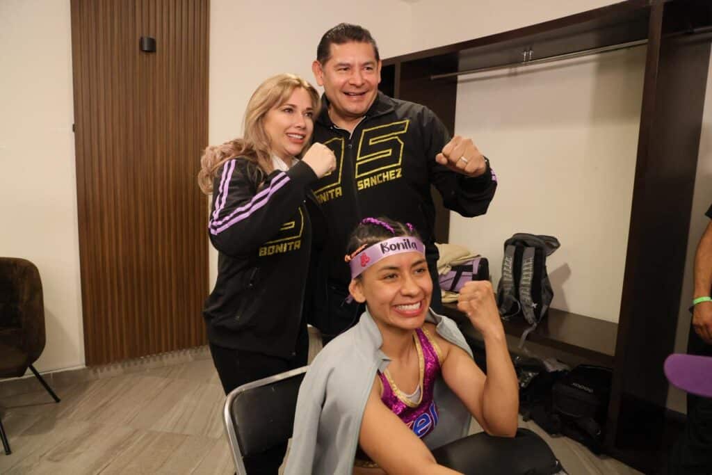 La campeona poblana contó con el apoyo del gobernador Alejandro Armenta Mier, quien previo al combate convivió con las familias poblanas que asistieron para respaldar a «La Bonita» Sánchez, en lo que se convirtió en una fiesta deportiva, donde señaló que la boxeadora es un ejemplo de superación y perseverancia.