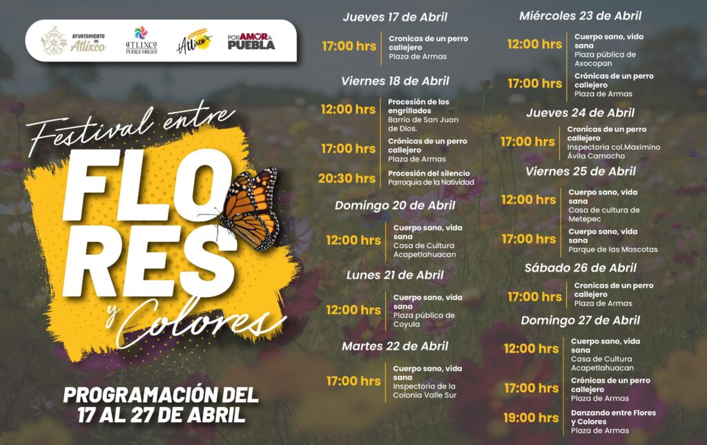 Consulta la cartelera completa en las redes sociales oficiales del Ayuntamiento de Atlixco, donde encontrarás información sobre horarios y sedes de cada evento.