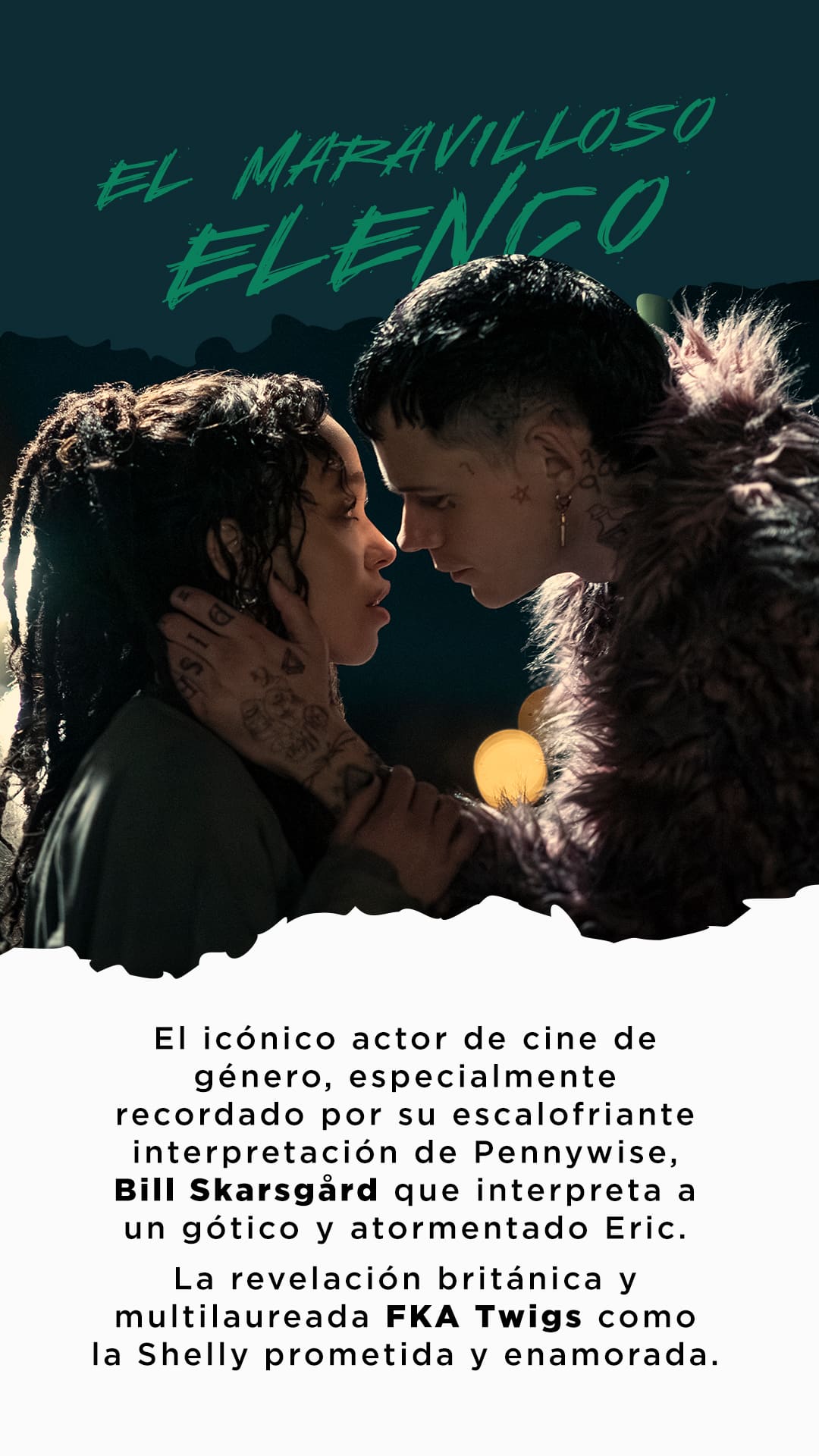 Bill Skarsgård añade que EL CUERVO es una película muy actual para el público de hoy. “Eso es lo que realmente me entusiasmó,” explica. “Eric y Shelly en esta película son completamente contemporáneos; son dos personas marginadas con las que cualquiera puede identificarse.”