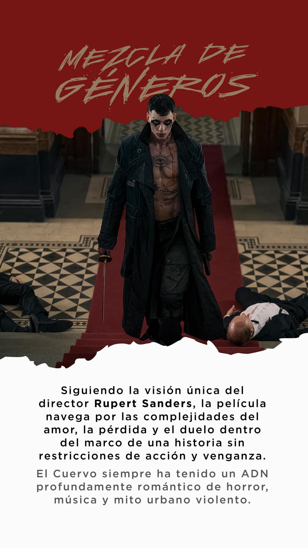 “Una vez que Rupert comenzó a trabajar con nosotros, decidimos hacer algo más intenso que proyectara esos sentimientos con los que todos pueden relacionarse, dentro de un gran thriller de acción,” continúa Hassell. “EL CUERVO toca un nuevo clima cultural, una nueva forma de ver el mundo, el duelo y, en última instancia, la redención.”