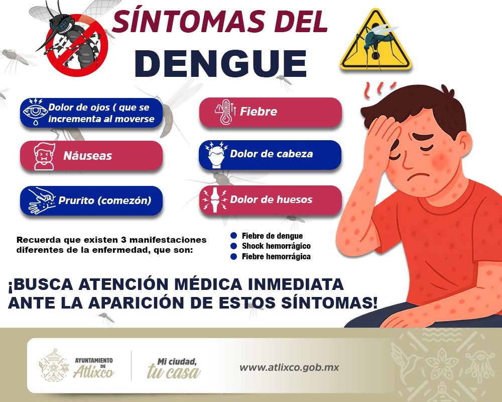 Si presentas alguno de estos síntomas, acude de inmediato al centro de salud más cercano para recibir atención médica oportuna. Recuerda: el dengue puede ser grave, pero con prevención y atención temprana, es posible evitar complicaciones.