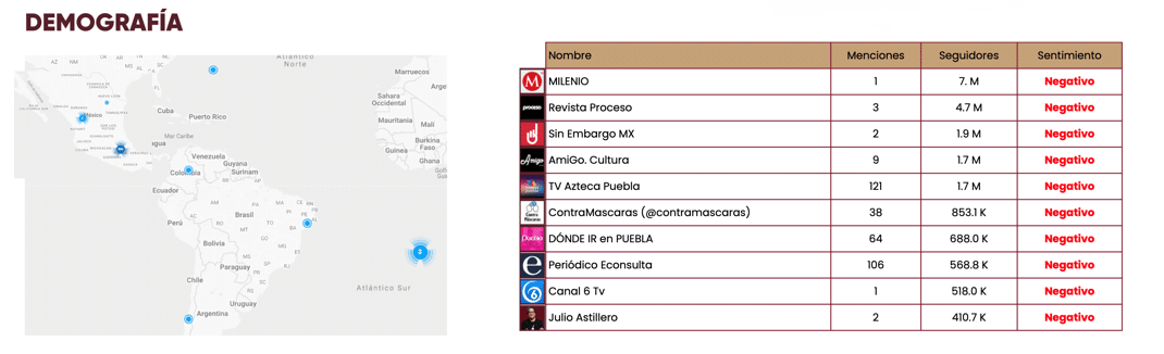 En contraste, el análisis de conversación digital muestra un entorno predominantemente negativo en redes sociales. Sin embargo, este comportamiento no necesariamente representa la opinión general, sino que está influido por la alta actividad de cuentas específicas, muchas de ellas vinculadas a posturas políticas críticas o espacios digitales con líneas editoriales definidas.