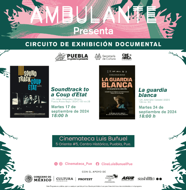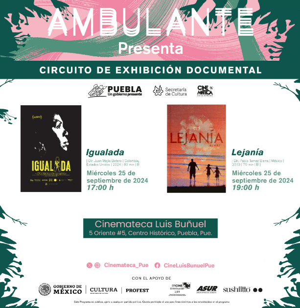 CIUDAD DE PUEBLA, Pue. – El gobierno presente de Sergio Salomón, a través de la Secretaría de Cultura, inició el ciclo «Ambulante Presenta. Programa de exhibición coparticipativa» en la Cinemateca “Luis Buñuel”, el cual está compuesto por filmes del género documental producidos en México, Estados Unidos, Colombia, Francia, Bélgica, Países Bajos y Canadá.