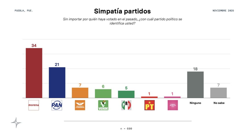 La encuesta de Áltica se realizó del 1 al 3 de noviembre de 2025 a 600 ciudadanos del municipio de Puebla, mediante entrevistas digitales ponderadas por sexo, edad, escolaridad y comportamiento electoral, con un margen de error de ±4 puntos porcentuales al 95% de confianza.