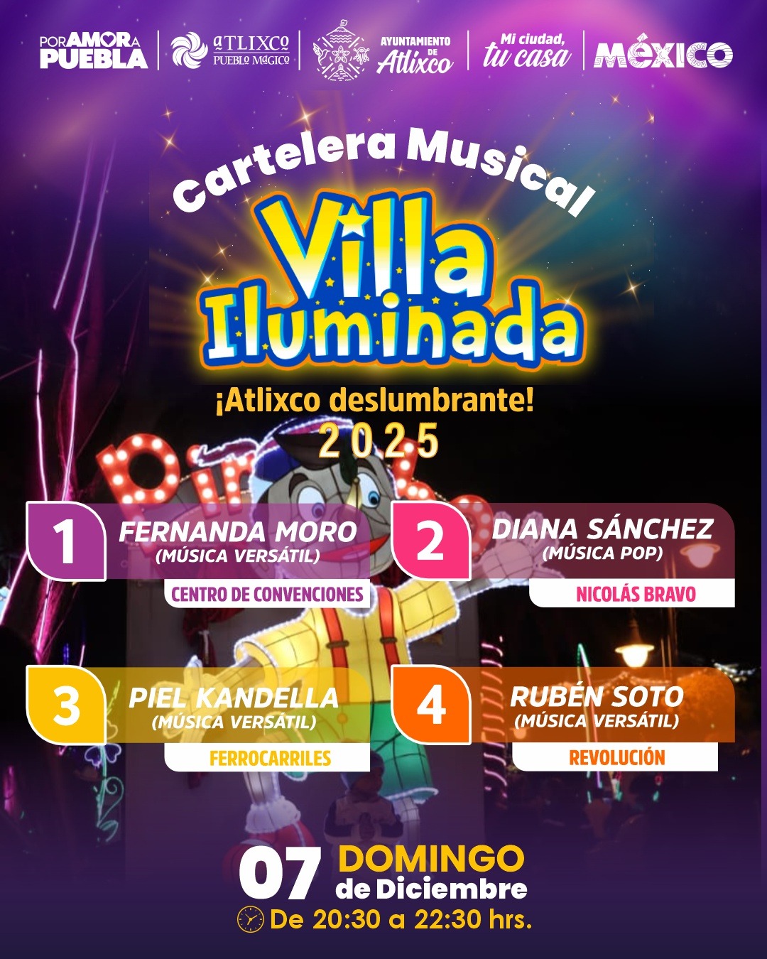 Atlixco se alista para recibir a familias y visitantes con la magia de la Villa Iluminada y una variada agenda cultural. La presidenta municipal, Ariadna Ayala, invitó a recorrer este tradicional atractivo que combina iluminación, arte y presentaciones de talento local durante toda la temporada.
