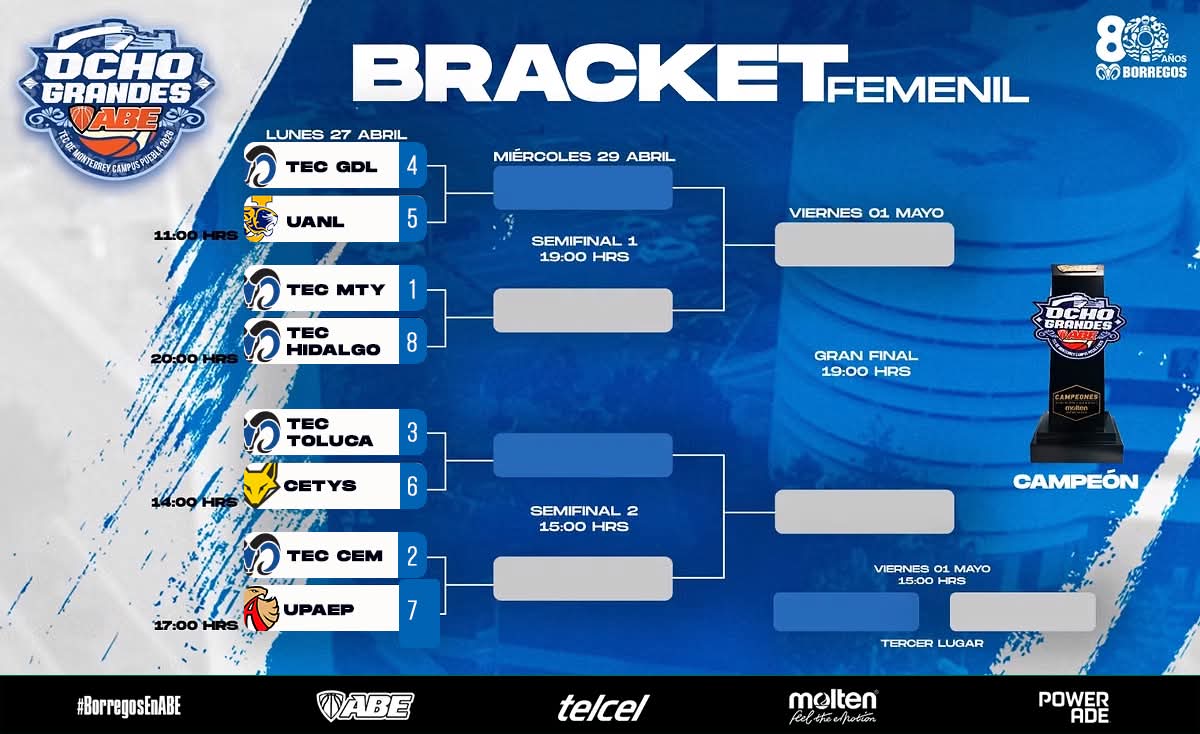 CIUDAD DE PUEBLA, Pue.– La duela del Tecnológico de Monterrey campus Puebla se encendió con la ceremonia de inauguración del Ocho Grandes ABE-ID, el evento más importante del básquetbol estudiantil en México. El estado recibe a los ocho mejores equipos de la División I, en ramas femenil y varonil, listos para disputar el campeonato nacional del 27 de abril al 2 de mayo.
