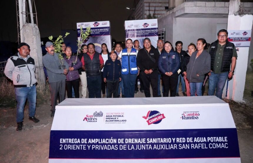 Con el objetivo de fortalecer la infraestructura hidráulica y sanitaria, el Ayuntamiento de San Andrés Cholula encabezado por la presidenta municipal Lupita Cuautle, realizó la entrega de la ampliación de drenaje sanitario y red de agua potable en San Rafael Comac.