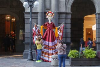 Catrinas y flores engalanan el Centro Histórico de Puebla