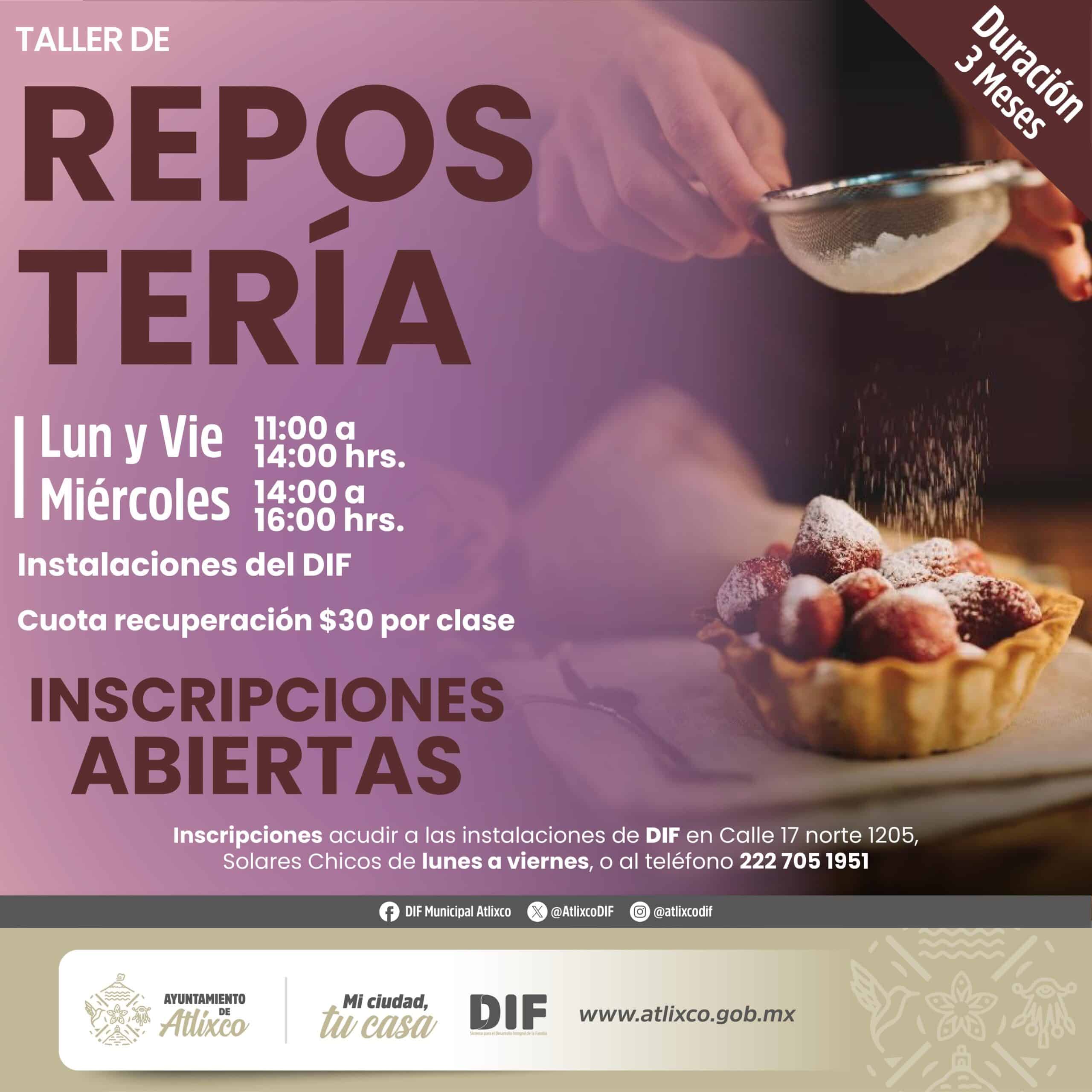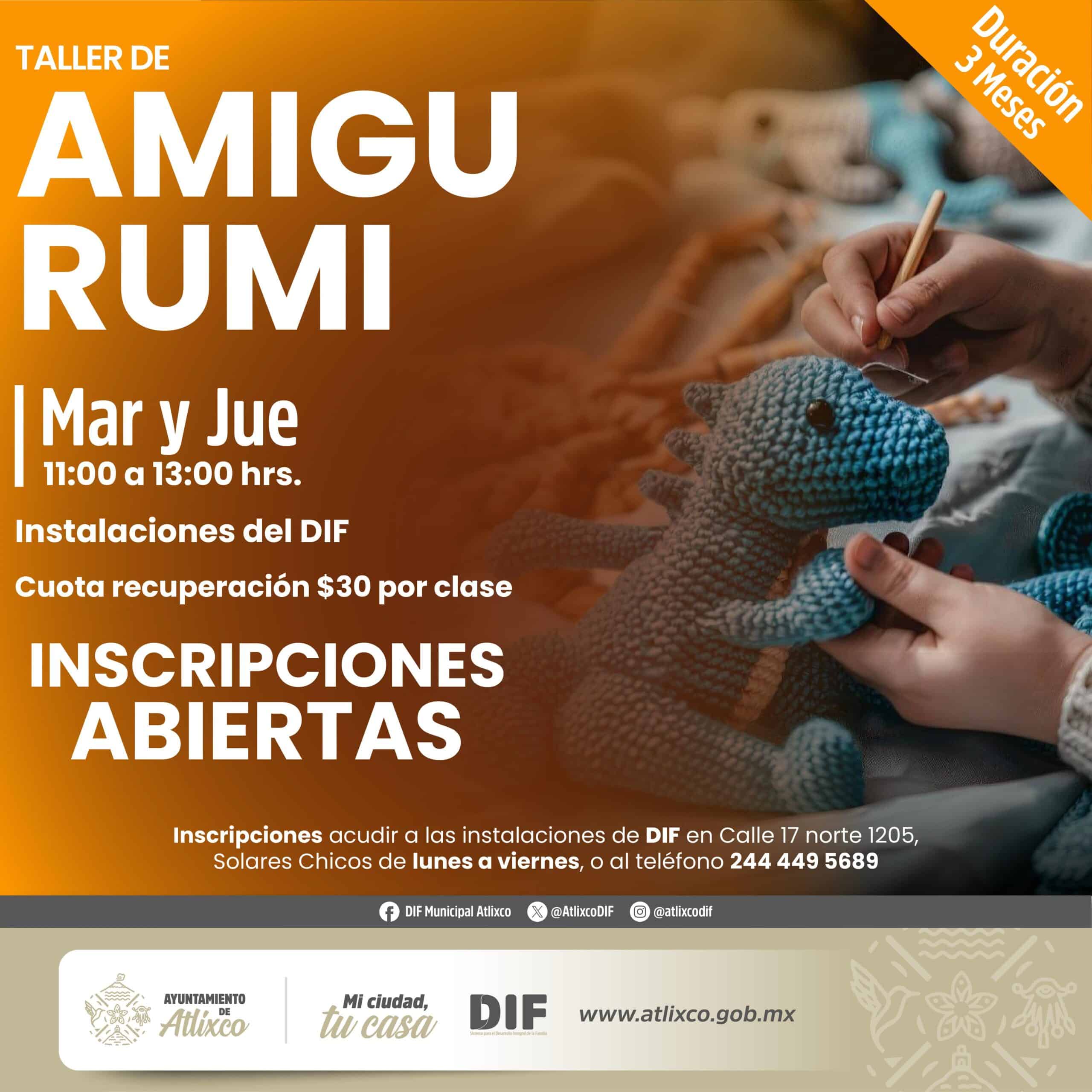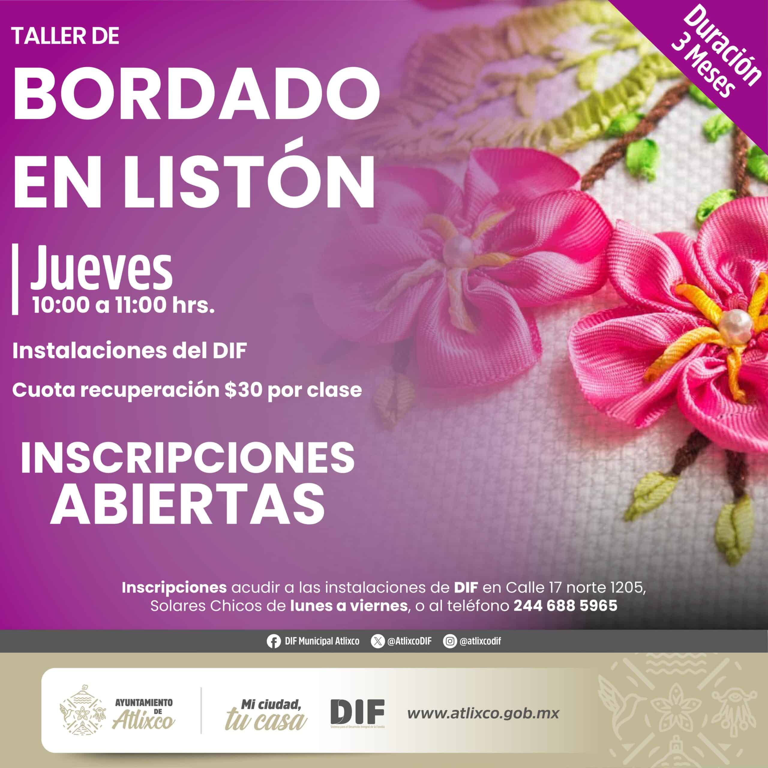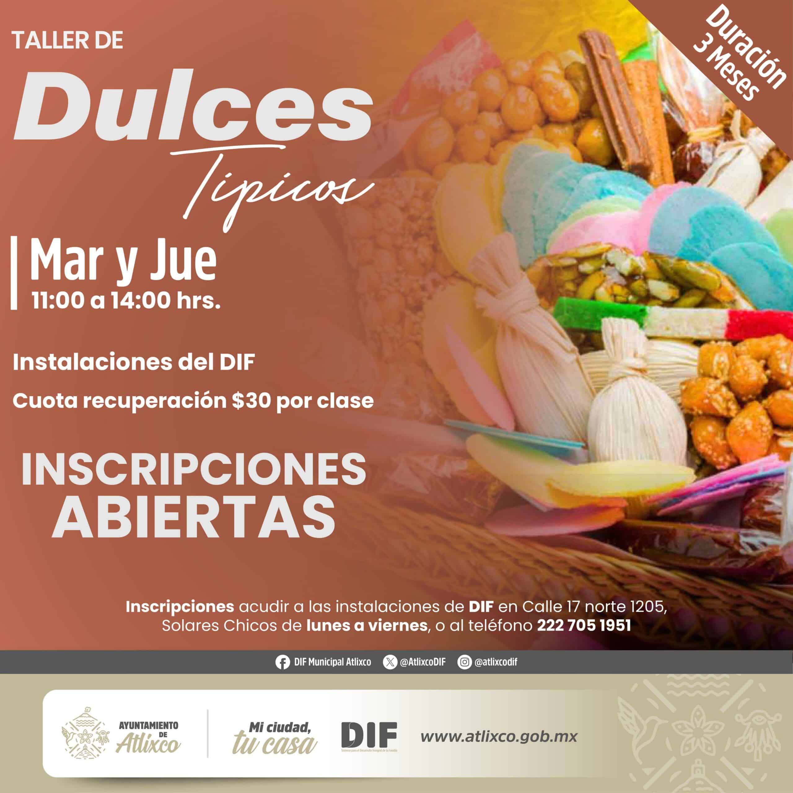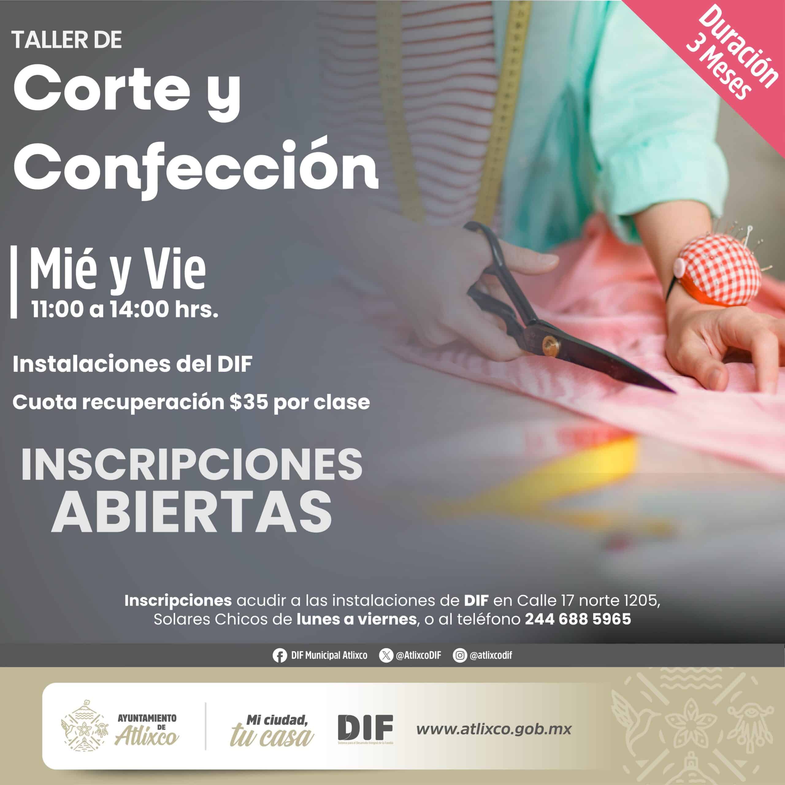 Los talleres tienen una duración de tres meses y se imparten en el DIF Municipal de Atlixco en diferentes días y horarios, adaptándose a las necesidades de los participantes.