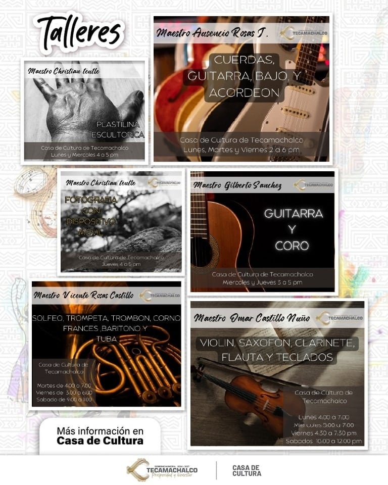 El H. Ayuntamiento y la Dirección de Cultura de Tecamachalco, te invitamos a unirte a nuestra comunidad artística y explorar tus habilidades en nuestros próximos talleres.