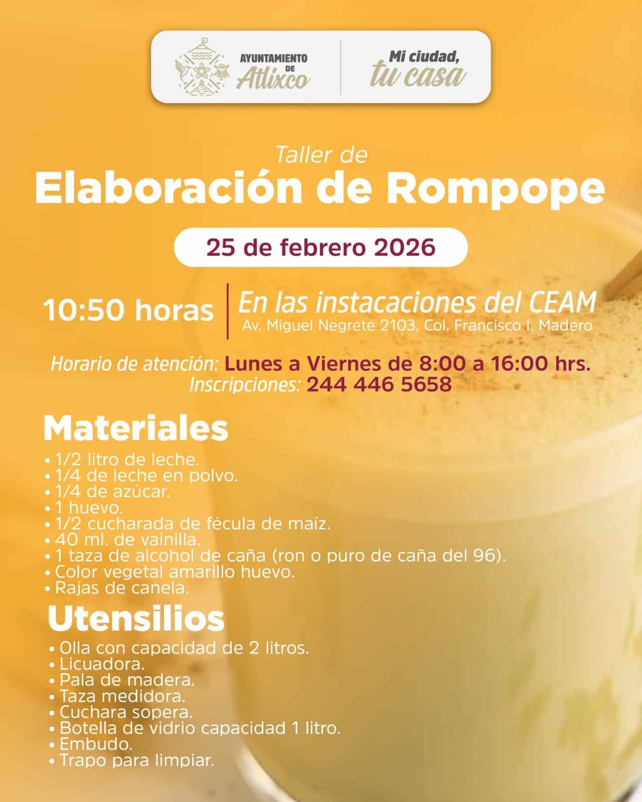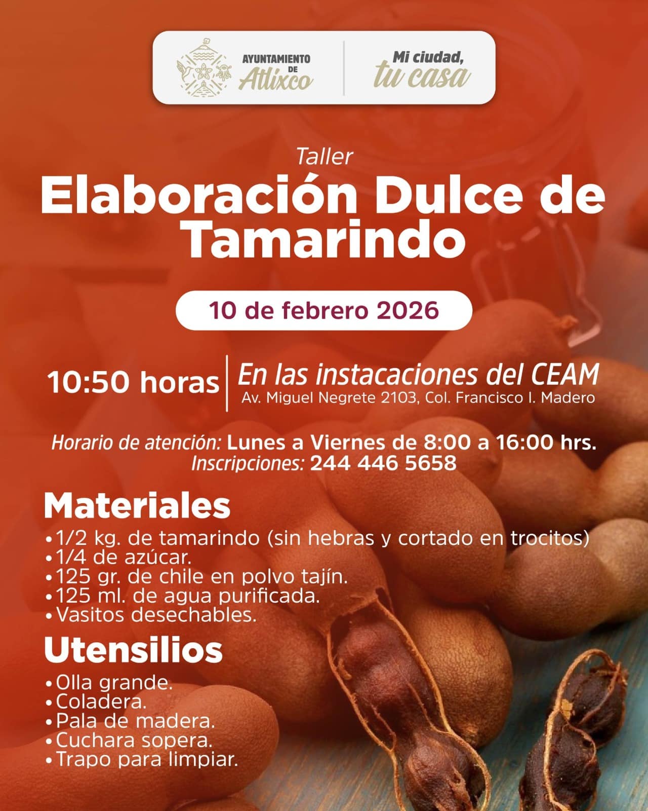 El 10 de febrero se realizará el Taller de Elaboración de Dulce de Tamarindo y el 25 de febrero el Taller de Elaboración de Rompope, donde las participantes adquirirán habilidades prácticas para la creación de productos artesanales con potencial comercial.
