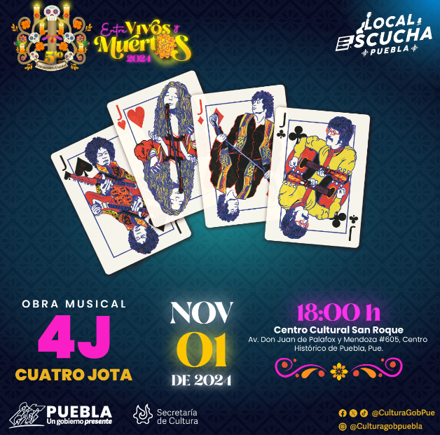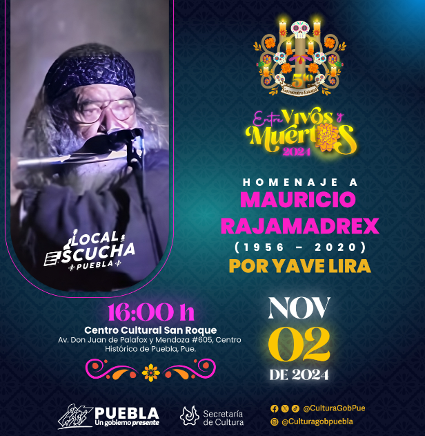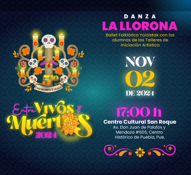 En tanto, en el Centro Cultural “San Roque” (Juan de Palafox y Mendoza número 605) tendrán lugar las obras “Entre Flores y Sabores” y “Cuatro jota”, el viernes 01 de noviembre, a las 16:00 y 18:00 horas, respectivamente; el “Homenaje musical a Mauricio Rajamadrex” por Yave Lira y la danza “La Llorona” a cargo del ballet folklórico “Yoloistak”, el sábado 02 a las 16:00 y 17:00 horas; y el evento “Música en el Campo Santo” de la compañía multidisciplinaria “Inisa”, el domingo 03 a las 16:00 horas.