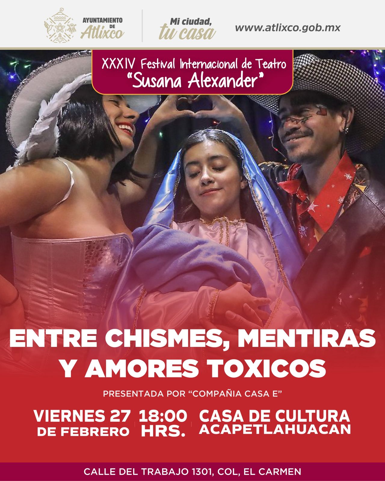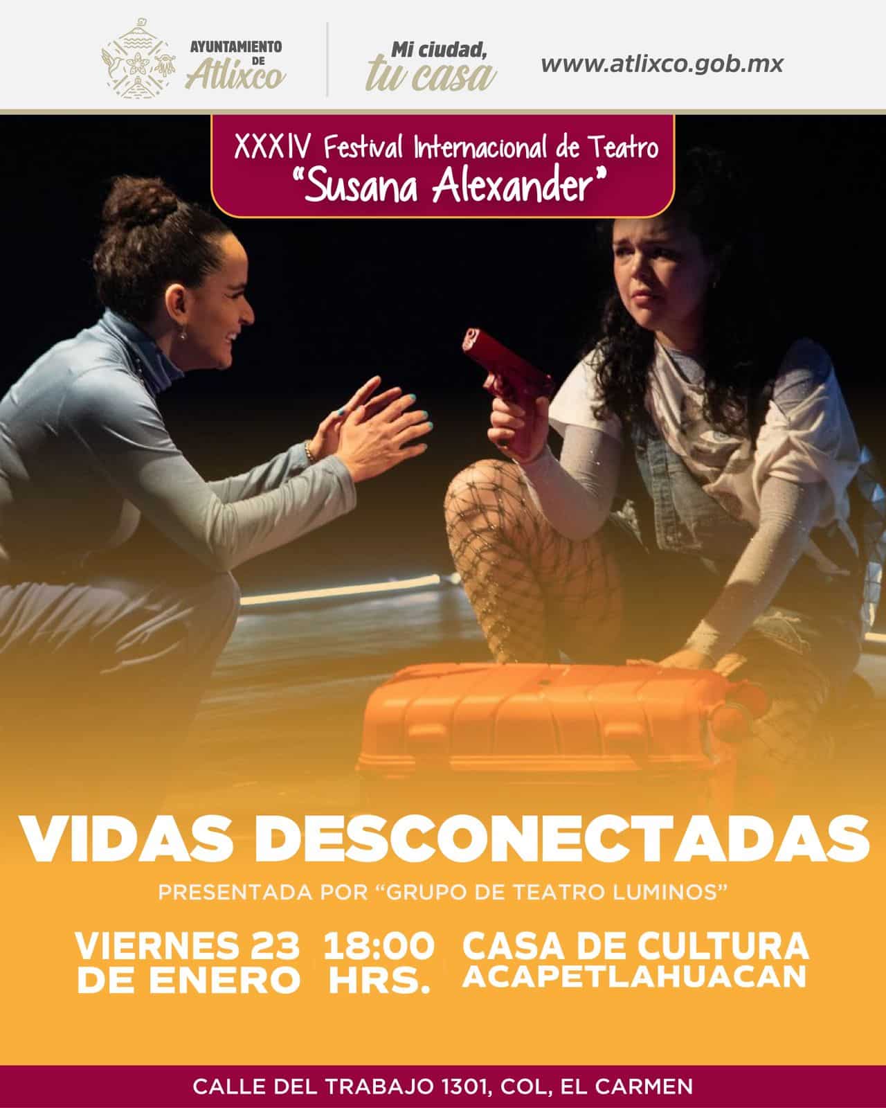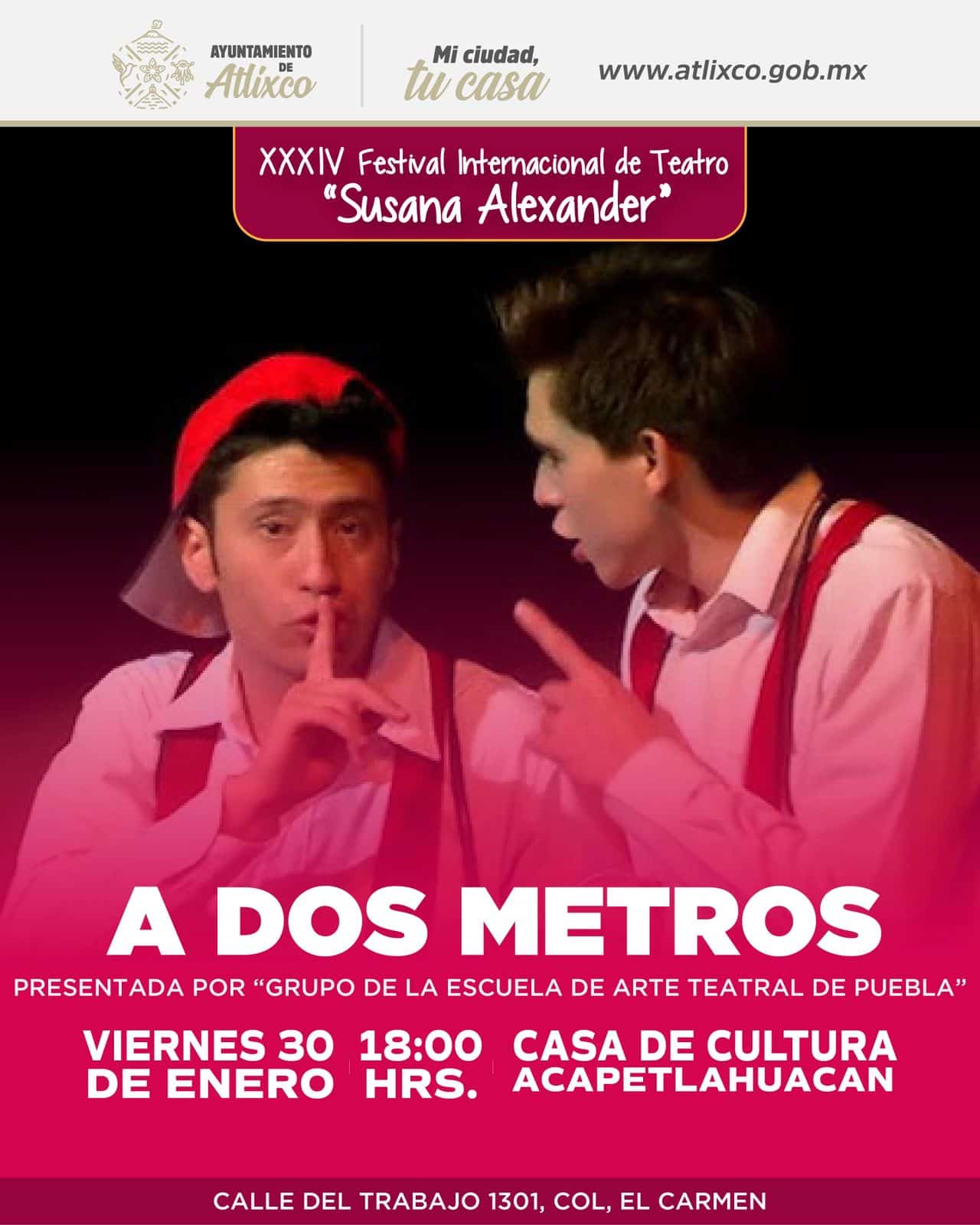 La presidenta de Atlixco, Ariadna Ayala, invita a la ciudadanía a disfrutar del XXXIV Festival Internacional de Teatro Susana Alexander, que se llevará a cabo en la Casa de Cultura Acapetlahuacan, con la participación de compañías locales y nacionales.